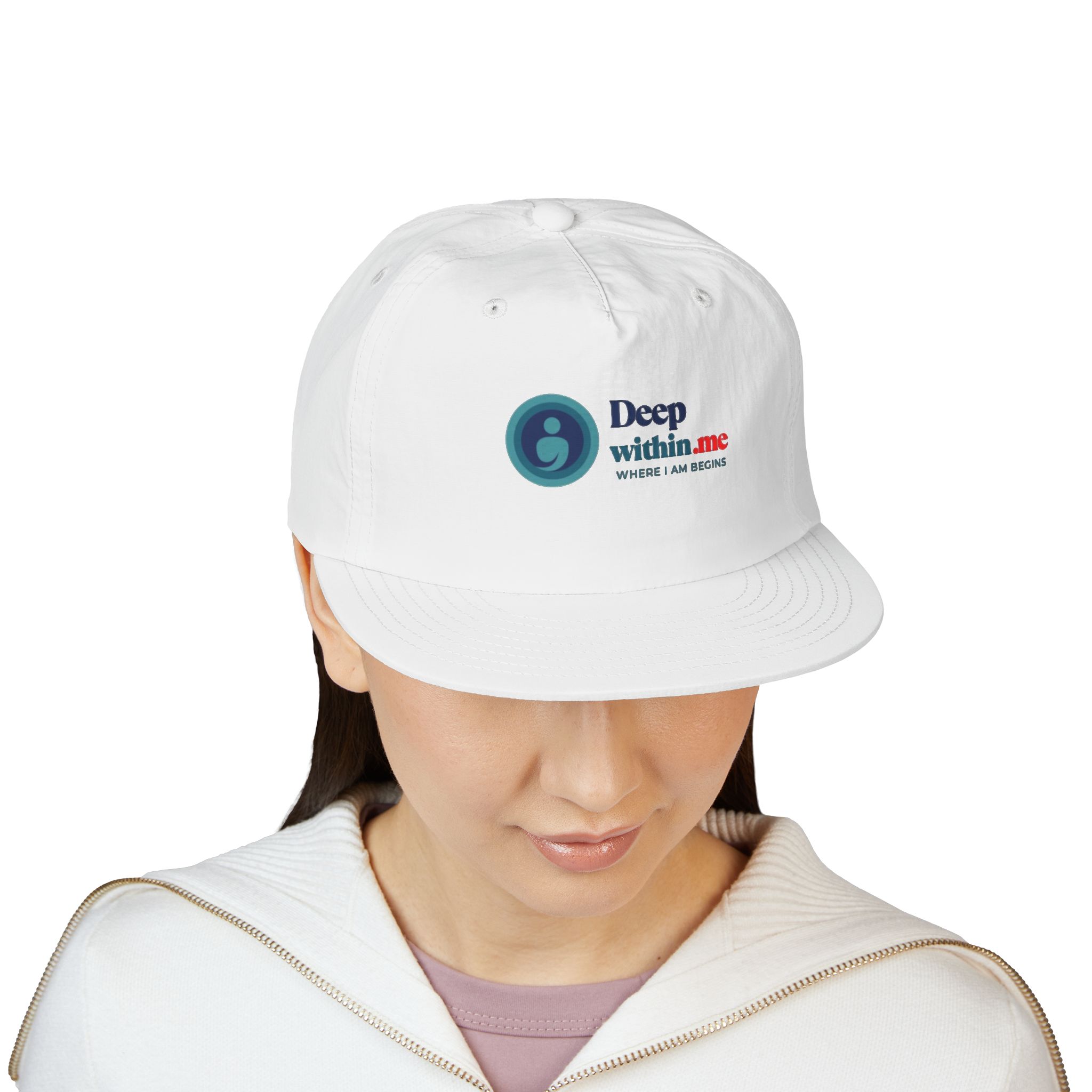 Deep Within logo Surf Cap | embroidered circle emblem, white snapback
