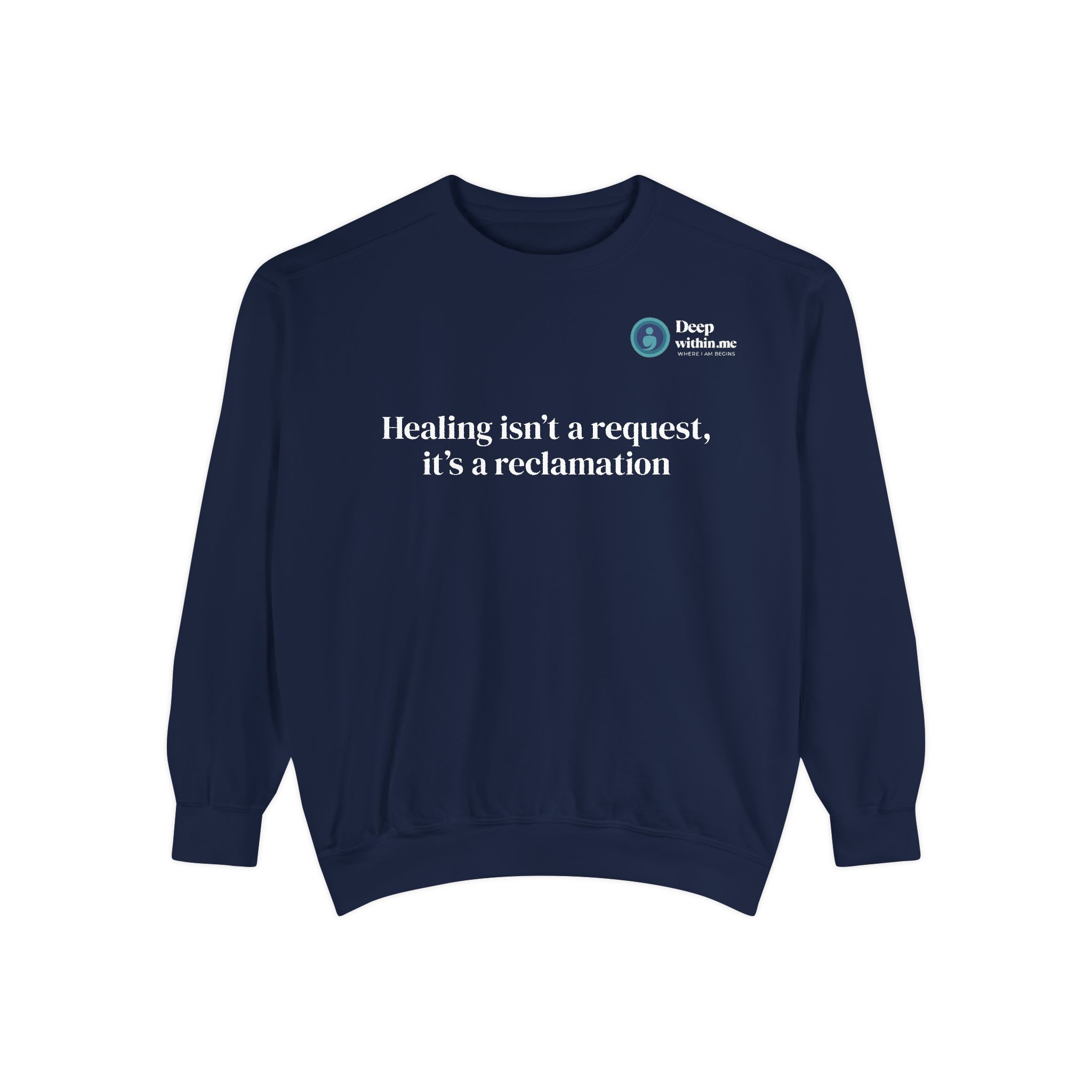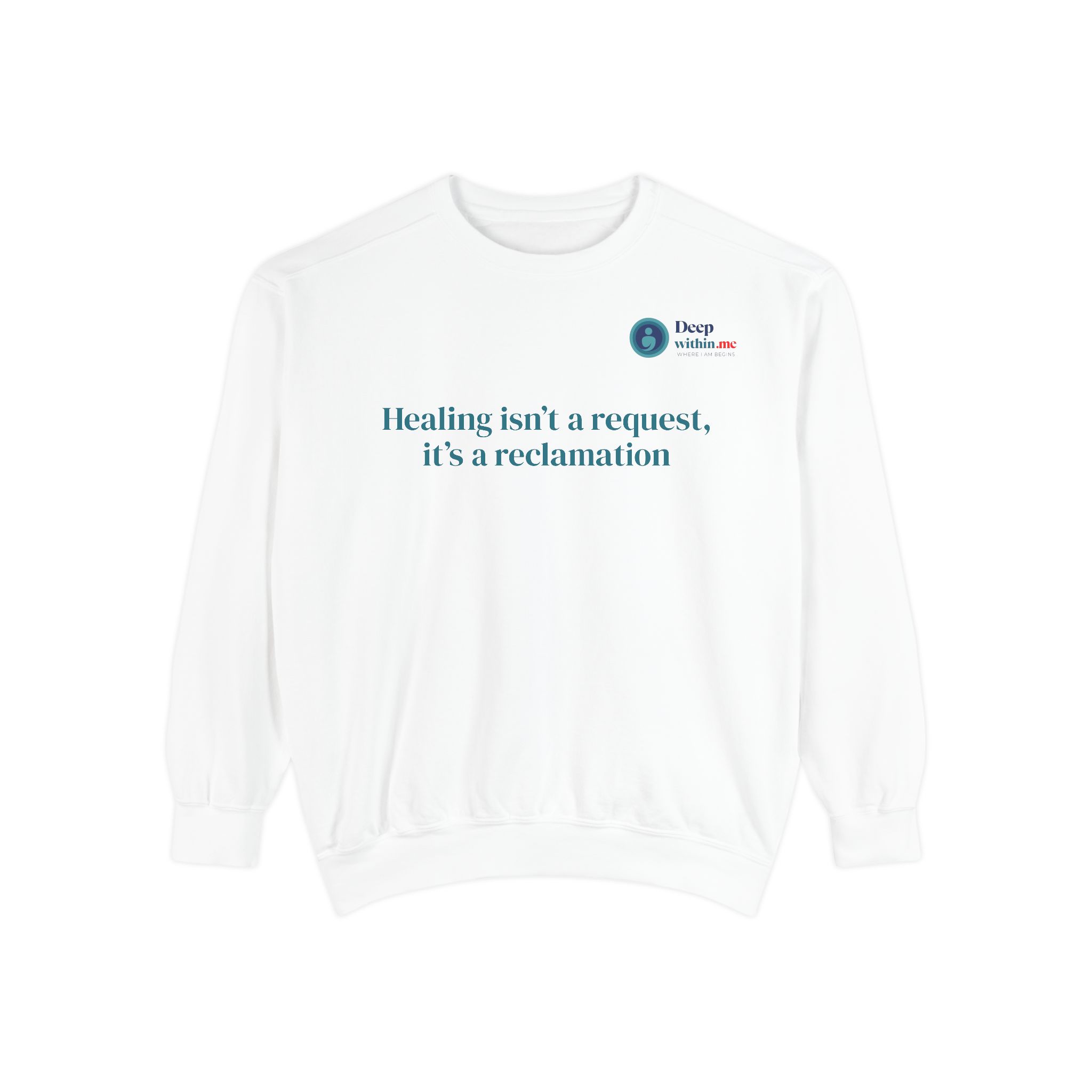 Healing isn’t a request it’s a reclamation Sweatshirt | QR code back