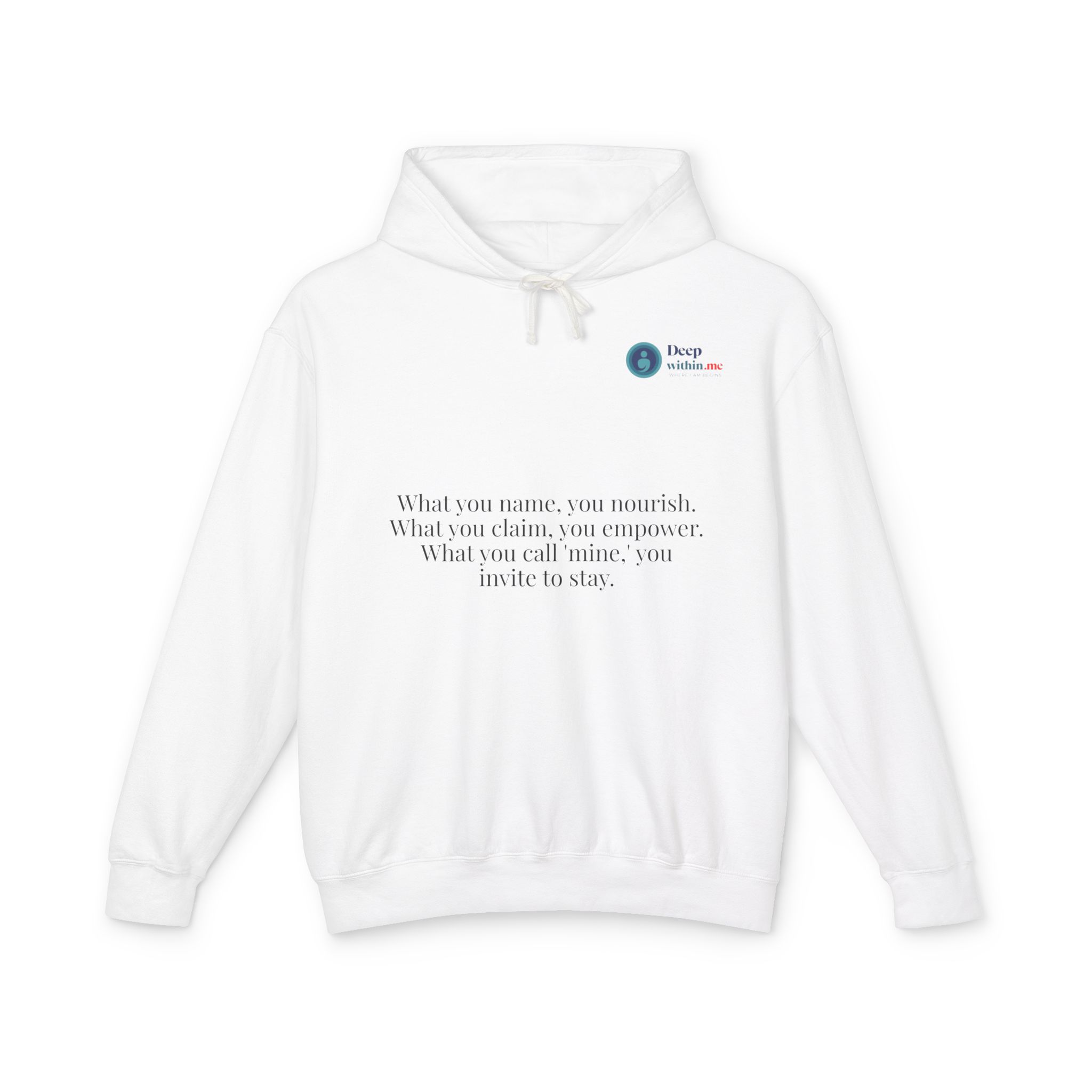 Lightweight, breathable, and quietly expressive — this hooded sweatshirt feels like a calm morning made wearable. Soft ring-spun cotton drapes with a relaxed silhouette, while a jersey-lined hood and subtle flatcord give a refined, lived-in look. The front bears a gentle, poetic line in fine type that invites a second thought. A small emblem near the collar adds a thoughtful accent. On the back, a stylized QR motif becomes a conversation starter — scan it and let the story continue. Wear it to slow down, to read the room, to meet friends for coffee, or to carry a quiet message through a busy day.