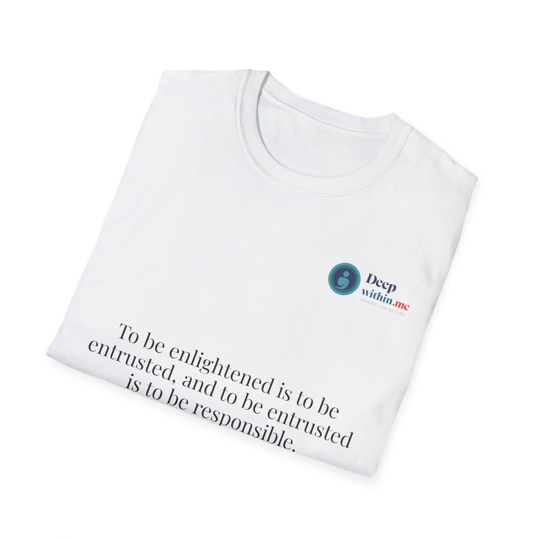 QR Code Quote T-Shirt — “To be enlightened is to be entrusted” Minimal Tech Tee