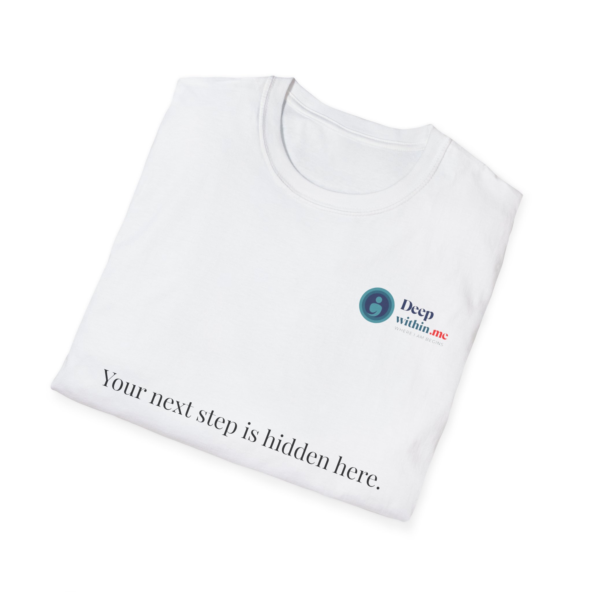 QR Code T‑Shirt — “Your next step is hidden here.” Minimal Tech Tee